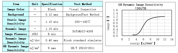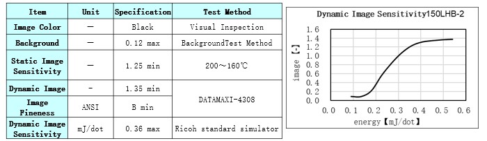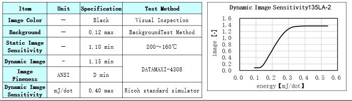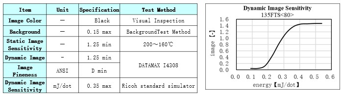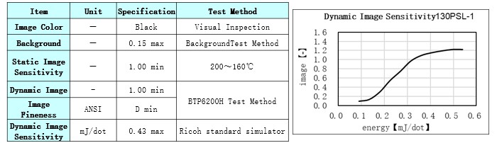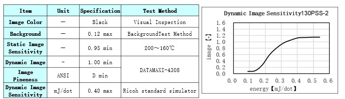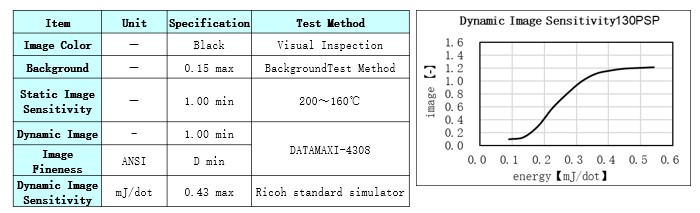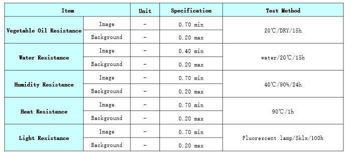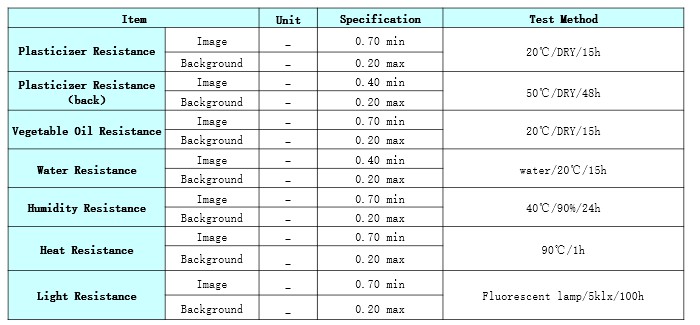 Product Caliper(μm) Heat Resistance Light Resistance Dynamic Sensitivity